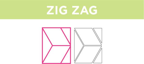 Each die cut features five design spots — two parallelograms and three triangles — that fill in the zig or the zag. The shapes naturally guide your eye across the page, creating flow and movement.