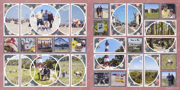 On the first page, Paije created two rows of three circular rings using the Charmed 4x6 and Charmed 2x4a (plus one half circle). The circles are bold and noticeable—but not overwhelming. They’re large enough to crop photos easily, and the soft curves instantly elevate the page.